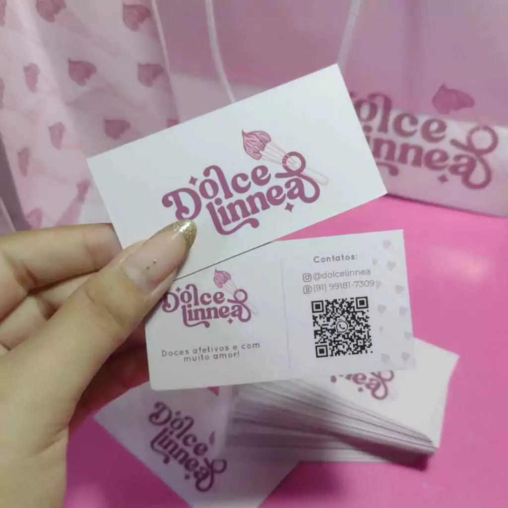 Cada cartão é cuidadosamente confeccionada em papel de 230g, com laminação frente everso dando deixando ele mais robusto sem deixar de ter um toque sofisticado, realçando as cores e detalhes exclusivos da sua marca.